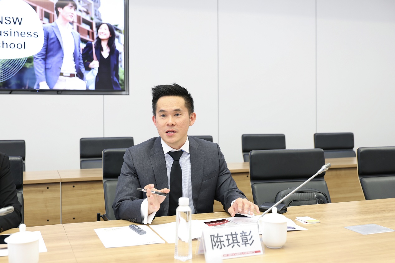 Barney Tan高级副院长对我校的热情接待表示感谢,他介绍了新南威尔士大学商学院的办学特色与发展近况。他强调,新南威尔士大学商学院高度重视国际化发展,期待在“4+0”合作模式等方面开拓新的合作路径,希望以此次会谈为契机,推动双方务实合作。