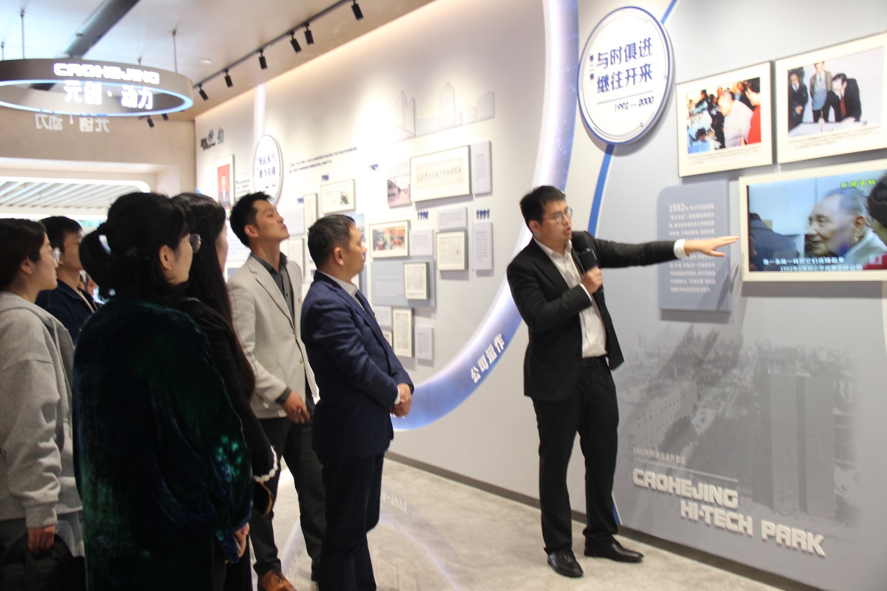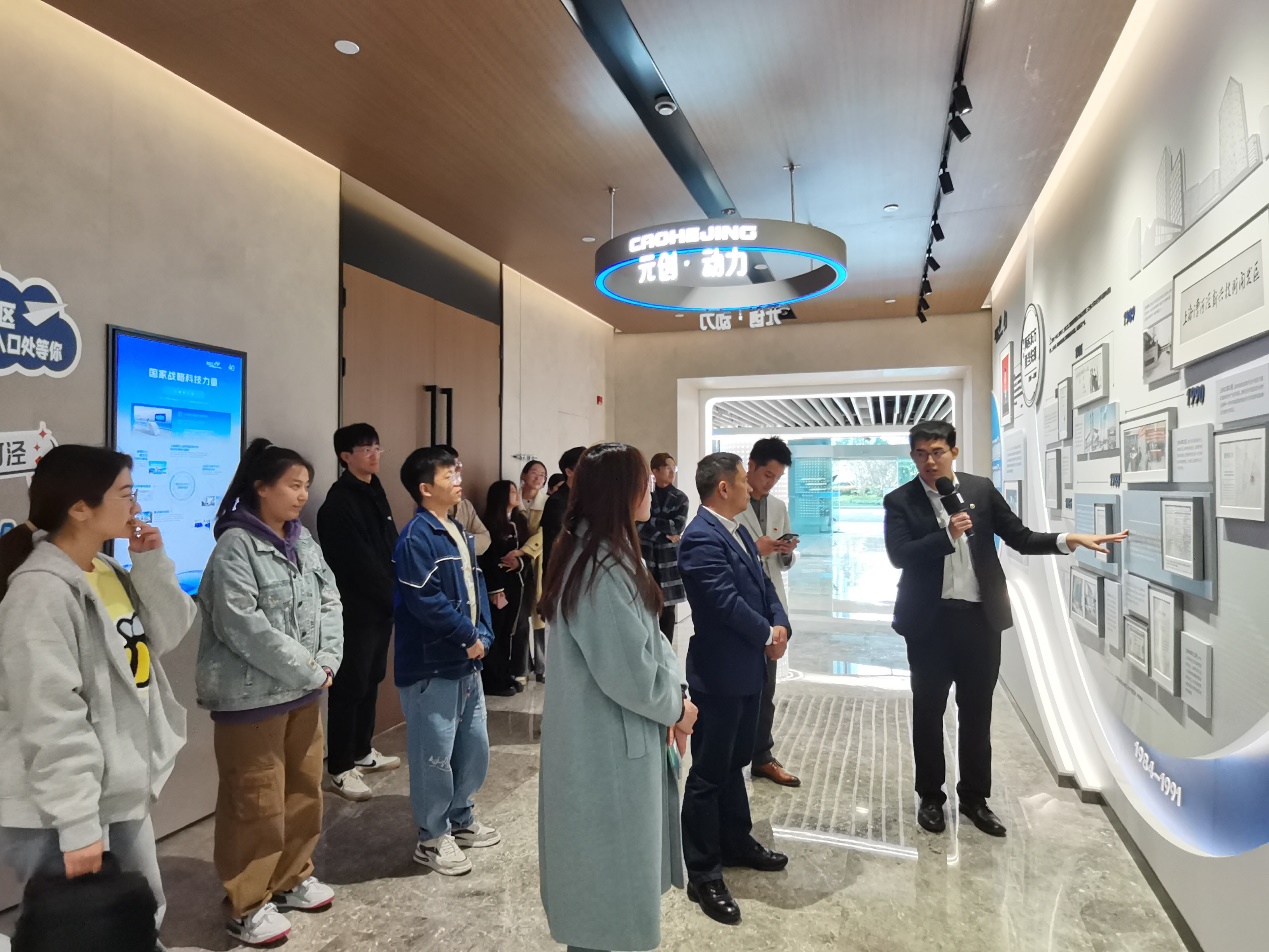 活动开始,上海临港漕河泾人才有限公司工作人员带领bat365在线体育登录师生参观了漕河泾40周年展厅,详细介绍了漕河泾现代服务园区在人大立法、政府管理、公司运作及区区合作方面的历史沿革,并重点讲解了目前漕河泾现代服务园区的创新生态模式和蓄力发展的产业新赛道,让同学们深入理解到上海建设具有全球影响力科技创新中心依托的重要承载区的发展方向和政策导向,进一步思考未来科技创新和产业发展的趋势,开阔了职业发展的视野。