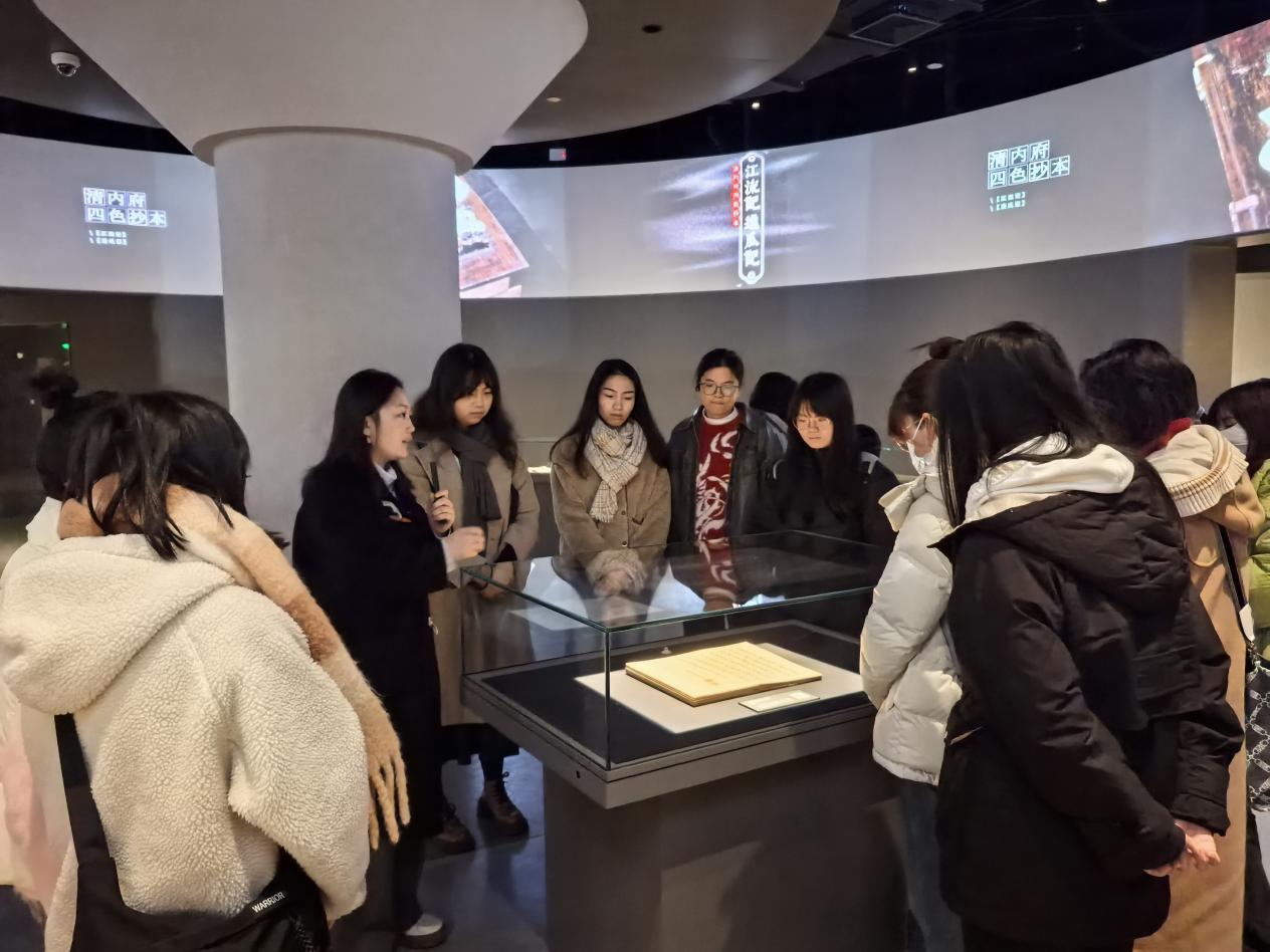 在馆藏精品区,收藏了古籍善本、碑帖尺牍、方志家谱、名家手稿等多种珍贵文献,系统地展示了从书写到勒石传拓,再到雕版、活字印刷、铅印、石印等技术演进下的文化传播历程。在阅读推广区,师生们参观了“瓷通天下”互动体验展,深入感受上海图书馆东馆的阅读推广活动。该展览巧妙融合了典藏古籍、实景展区、多媒体空间以及世界级的瓷器展品。在工作人员的引导下,师生们从古尔纳的家乡——东非桑给巴尔岛的海滩出发,体验了一场沉浸式的“海上丝绸之路”之旅,亲临“洋房里的中国客厅”,并步入《西厢记》的“瓷”画世界,深刻感受中国当代陶瓷艺术的魅力。