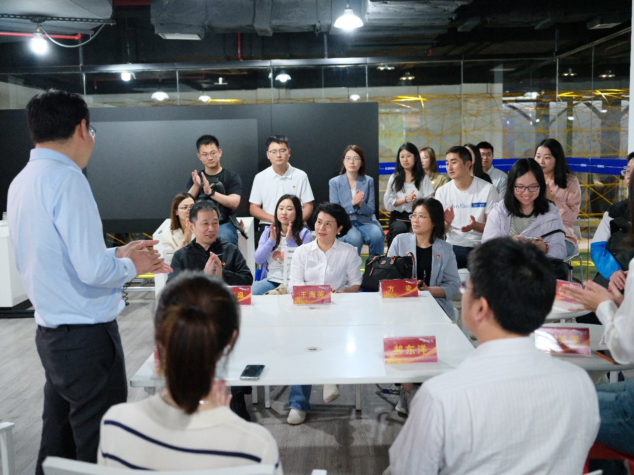 在党建共建交流环节,工商会计教工党支部书记杜刚和中国商飞飞机设计研究院团委书记姚西分别介绍各自支部的基本情况,并交流党纪学习教育开展情况。杜刚老师表达了对国之重器的骄傲与自豪,并对集体攻关和技术突击队的辛勤工作表示了敬意,姚西强调了管理序列对人才的需求以及经管领域人才的重要性。与会师生党员围绕党纪学习教育、推进校企合作、卓越人才培养等方面进行了交流探讨。