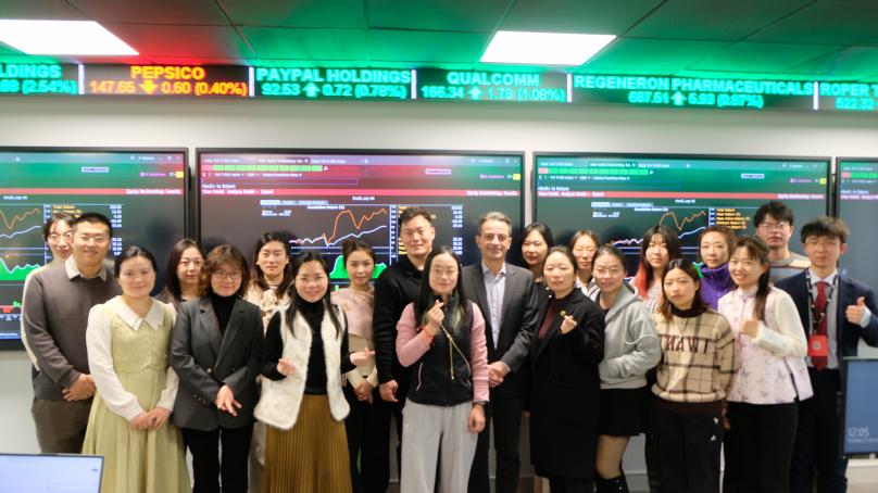 理论与实践相结合是此次访学的一大亮点。在模拟交易工作坊中,Costas副教授为学生们演示了如何运用彭博终端进行投资策略的筛选、回测和实施。他以低市盈率和小公司投资组合策略为例,通过真实数据的展示,让经管学子直观感受到量化投资策略在实际操作中的应用。在工作坊中,学生们积极参与,跟随Costas副教授的演示操作彭博终端,体验了从筛选股票到构建投资组合的全过程。通过实际操作,学生们不仅加深了对量化投资理论的理解,还掌握了彭博终端这一国际领先的金融分析工具的使用方法,为未来的职业发展奠定了坚实的基础。