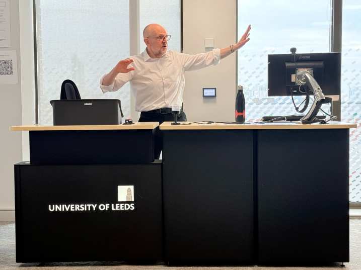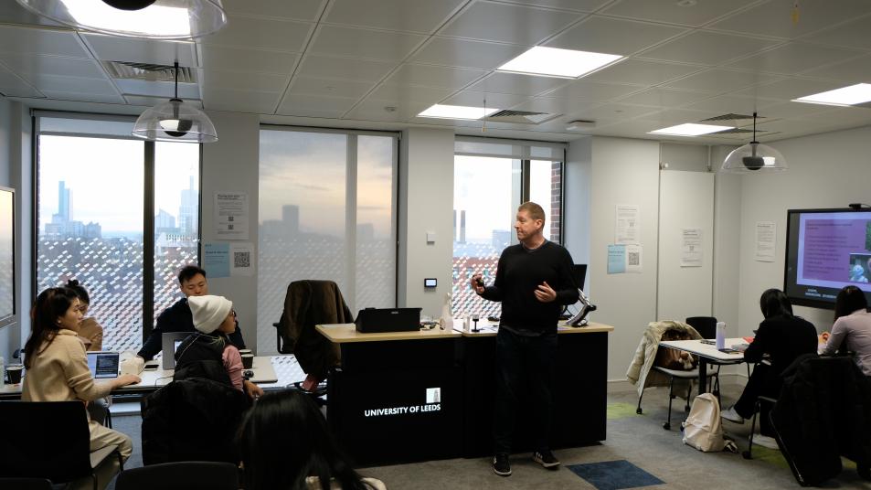 James Mason是英格兰约克郡西部和北部联合商会企业高管CEO,在利兹大学商学院的邀请下,他从外地专程赶到校区内与访学师生对谈与交流。活动中,James Mason分享了他的个人创业历程,从年轻时涉足制造、媒体、体育俱乐部到旅游业等多个行业,强调了保持积极态度和克服困难的重要性。他还讲述了商会作为非政府组织的角色,如何支持当地经济的发展,并在全球范围内促进商业扩张、就业创造和国际贸易。