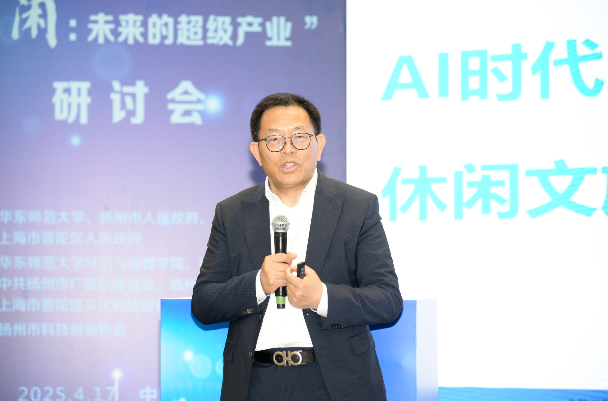 4月17日,华东师范大学联合江苏省扬州市、上海市普陀区,举办“休闲:未来的超级产业”研讨会,发挥三方产教融合优势与文旅资源特色,汇集顶级专家智慧与产业经验,共同探讨未来人工智能大发展、人类从传统劳动大解放后休闲文旅产业的新地位、新境界、新机遇,形成一定共识、发布会议倡议,为社会发展贡献智慧、为产业升级提供参考、为新文科转型提供支撑。研讨会由华东师范大学长三角旅游发展研究中心主任冯学钢主持。