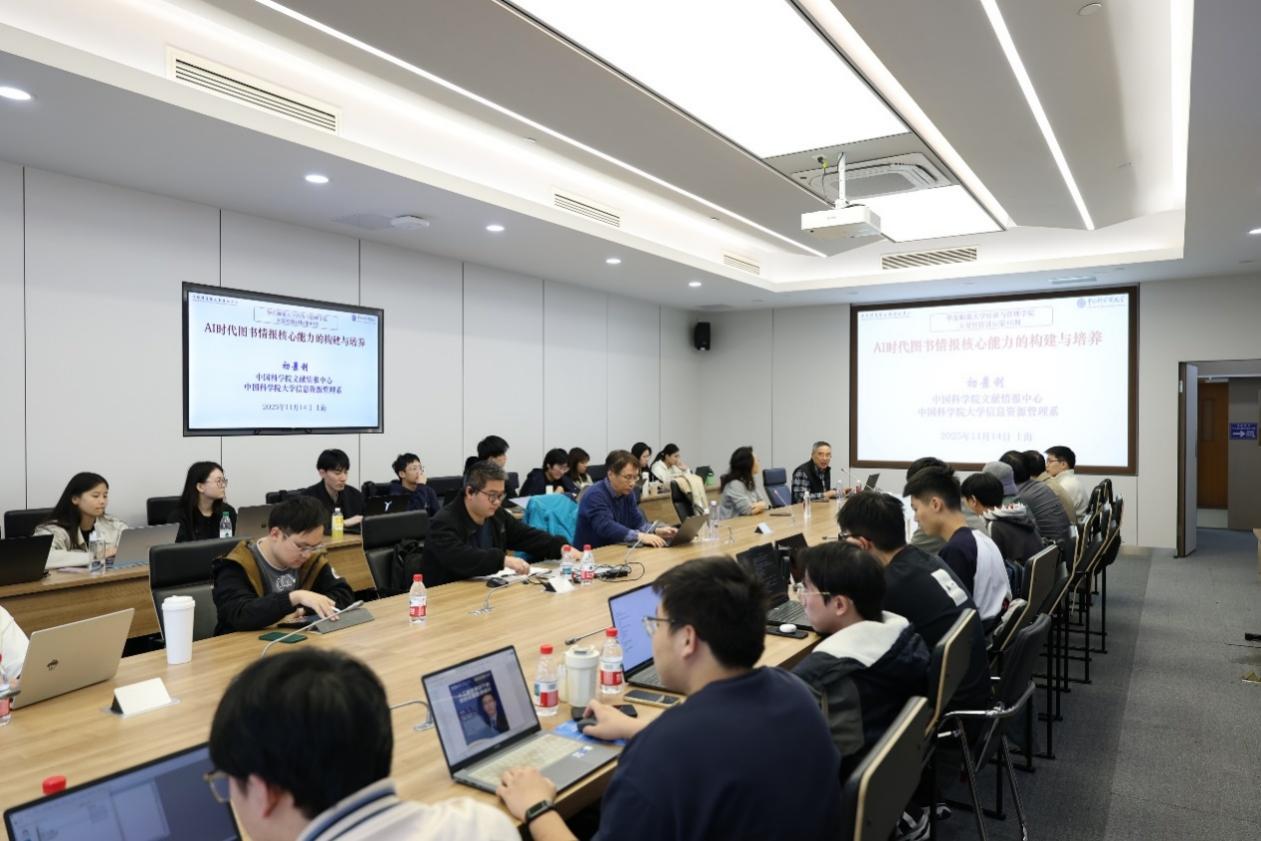 2025年11月14日bat365在线体育登录成功举办人工智能时代的信息资源管理前沿讲座。本次讲座邀请了中国科学院文献情报中心学术委员会主任、中国科学院大学信息资源管理系主任初景利教授,以及天津师范大学管理学院院长刘冰教授担任主讲嘉宾,学院信息管理系主任蔚海燕担任主持人。本次讲座吸引了学院50余名师生参与,会场交流讨论氛围浓厚。