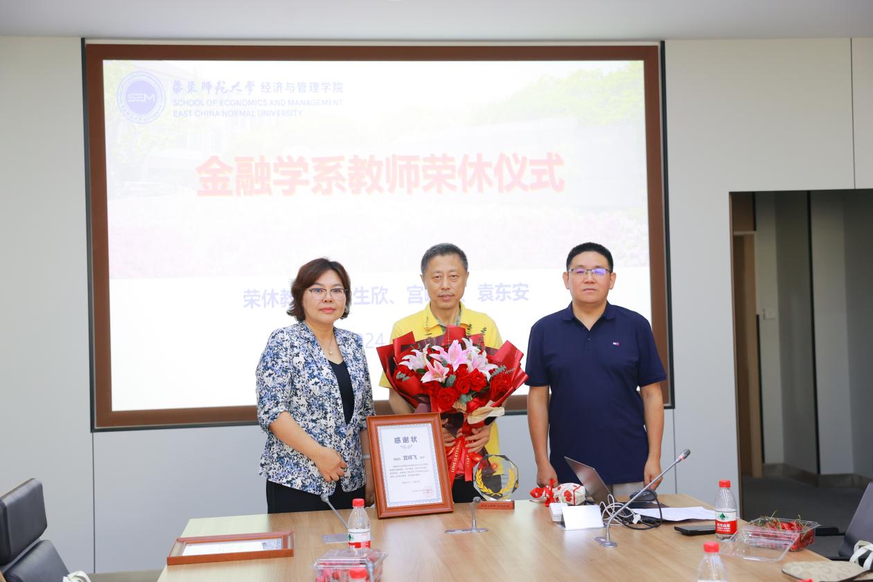 2024年7月1日上午,bat365在线体育登录在理科大楼A508为金融学系冉生欣、宫峰飞和袁东安三位教师举办温馨而隆重的荣休仪式。bat365在线体育登录党委书记岳华、院长殷德生、党委副书记赵庆、副院长杨连星、金融学系教师及学生代表20余人通过线上线下相结合的方式,出席了此次荣休仪式,对三位老师的职业生涯深情致敬。