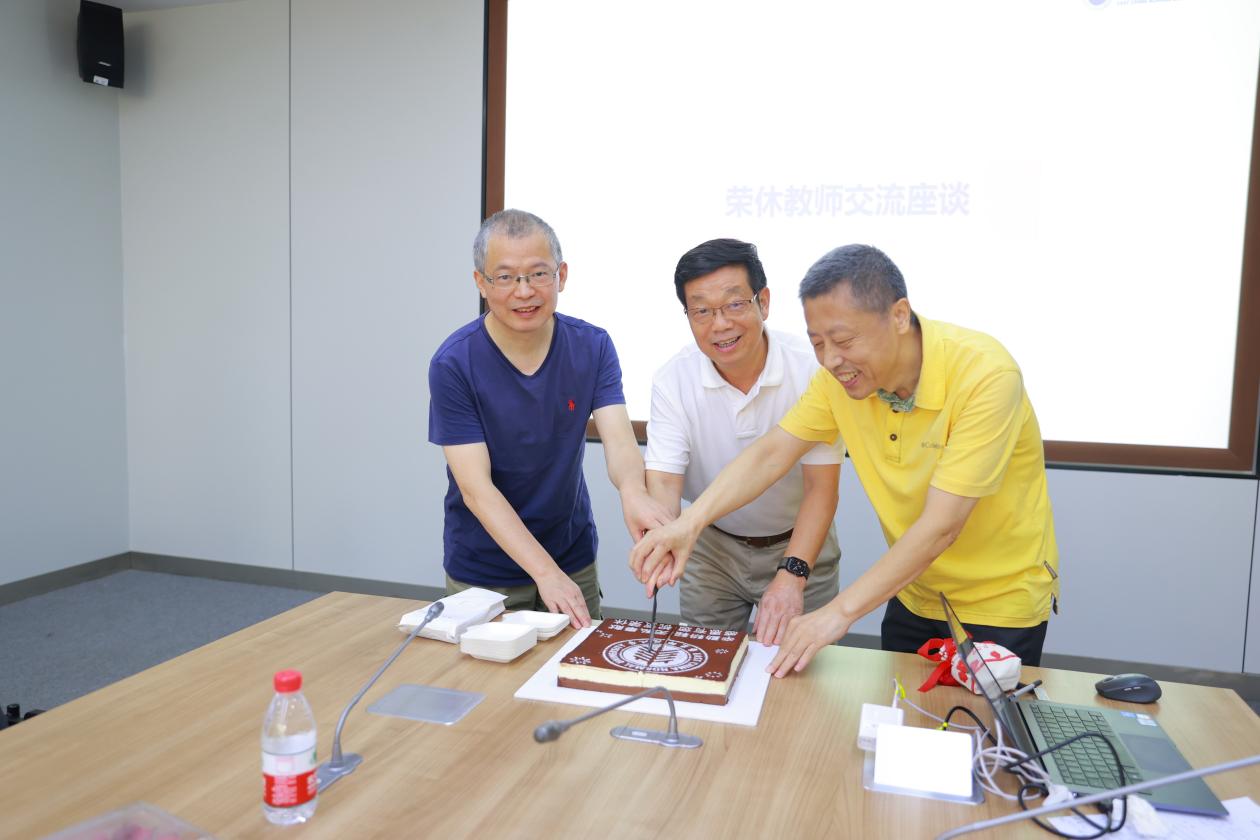 让我们再次向冉老师、宫老师和袁老师致以最崇高的敬意和最美好的祝福!愿你们的退休生活如这蛋糕一般甜蜜美满,愿你们在未来的日子里继续享受生活的美好与温馨。同时,也让我们携手并进,共同为学院和学科的发展贡献更多的力量与智慧!