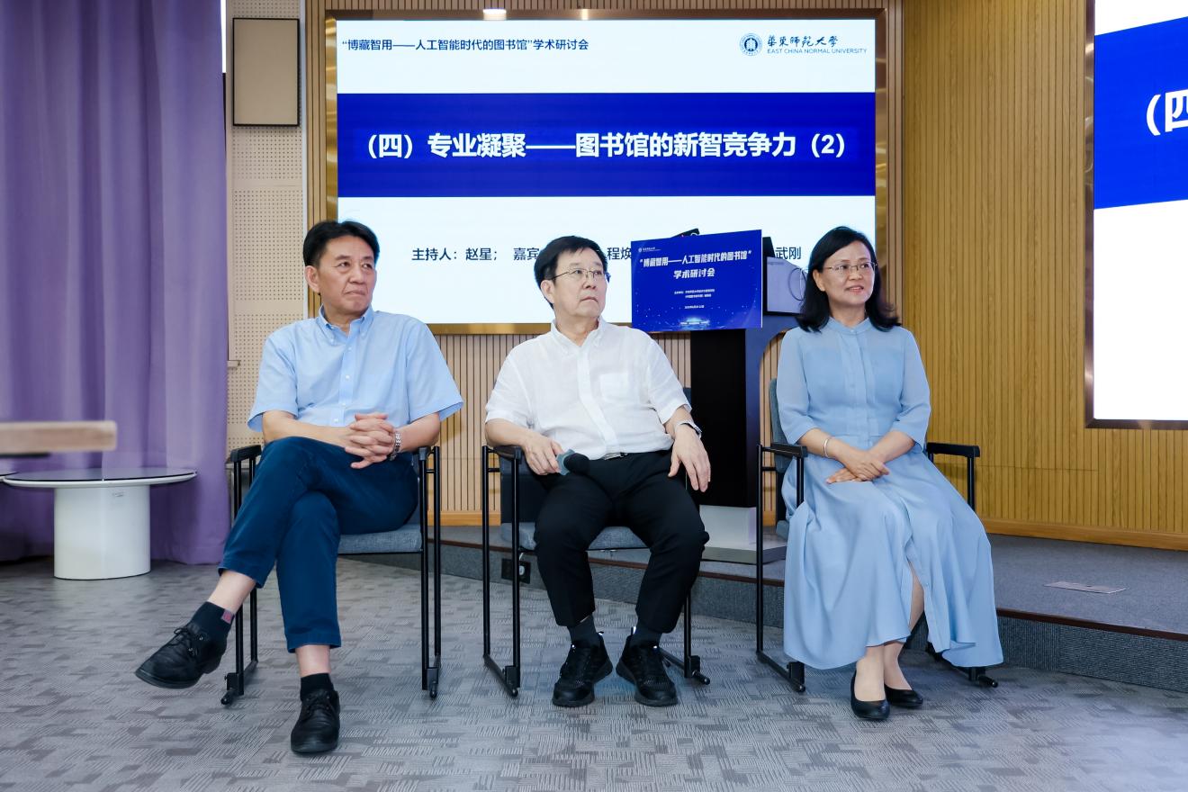 研讨会第一个议题“理念引领——图书馆的新知驱动力”环节由bat365在线体育登录信息管理系主任蔚海燕主持,三位资深专家进行了专家视点分享。首都图书馆原馆长、教授倪晓建以“AI时代图书馆的责任”为题,系统梳理了图书馆学的发展历程,强调了图书馆在智库建设、记忆工程、数字资源融合、单元信息处理四大领域的责任。华东师范大学信息管理系教授范并思汇报了“AI与公共图书馆制度”,剖析了公共图书馆制度的优势与时代挑战,并提出思考:AI到底是赋能还是冲击了公共图书馆制度?他呼吁公共图书馆阅读推广活动回归阅读本源。上海图书馆原馆长、澳门大学图书馆原馆长吴建中聚焦“图书馆在知识基础设施建设中的新使命”,强调图书馆需从资源守护者转向知识基础设施构建者。他认为AI时代,高校图书馆应该在开放科学、数据管理等领域抢占先机,重塑学术传播体系中的话语权。