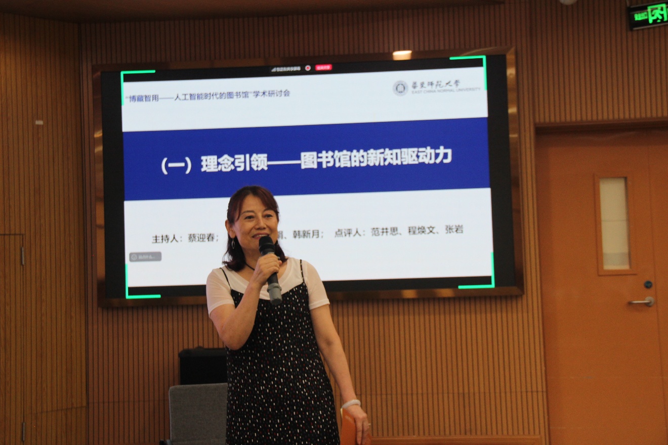 6月22日上午为青年学者报告、点评、开放研讨环节。“理念引领——图书馆的新知驱动力”主题青年学者报告和研讨由上海外国语大学图书馆馆长蔡迎春主持。北京大学信息管理系图书馆学教研室主任李世娟以“基层图书馆为基,分层分类服务为体,人工智能赋能为用”为主题展开探讨,关注阅读的代际传递效应,严谨的实证研究为基层图书馆发展提供实证与技术路径参考。国家图书馆数字资源部副主任韩新月分享“数字叙事新实践与图书馆服务新视角”,通过展示国家图书馆的实践案例,分析技术与叙事融合的特征,如双向互动、多媒体元素、用户共创等,提出图书馆需在数字叙事中平衡技术适配性与伦理风险,通过多元化叙事主体激活馆藏资源。在点评环节,范并思、程焕文、张岩对上述分享进行细致点评,并针对提及的阅读代际传递、图书馆的责任、图书馆的宣传重点等问题开展深入讨论。
