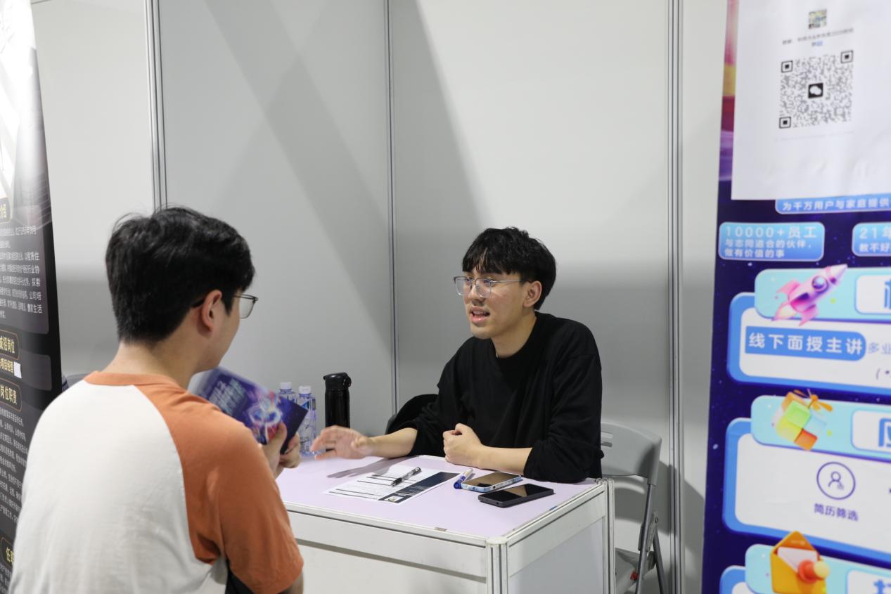 招聘会现场气氛热烈,各招聘单位展位前吸引大量学生驻足交流。企业招聘负责人与同学们一对一交流,就岗位需求、能力匹配等方面答疑解惑,加深双方了解。