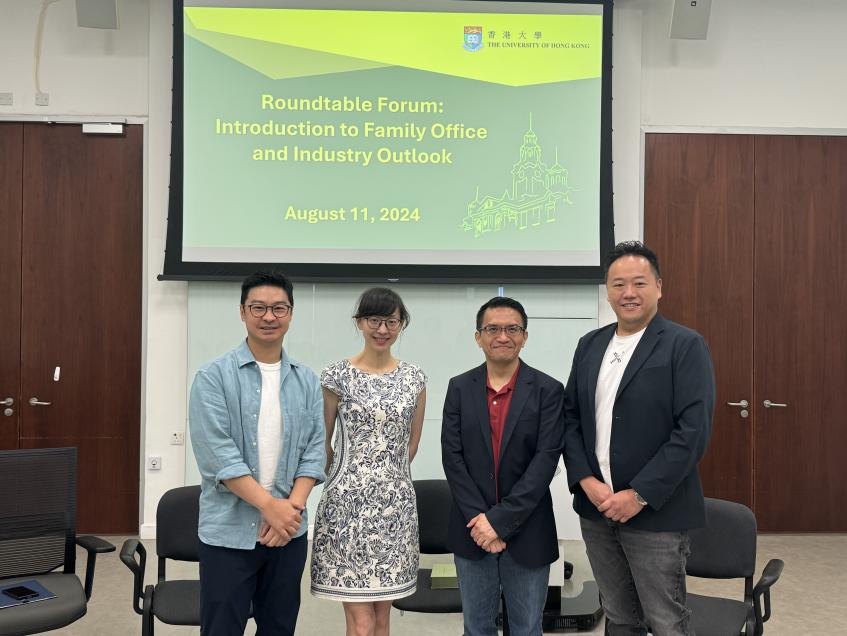最后一天的研学活动是由港大经管学院主持的学术圆桌会议,邀请到了Mr. Ronald CHAN、Ms. Angel CHIA、Mr. Baniel CHEUNG及Mr. Samuel WU,都是行业顶级大佬。他们以丰富的行业经验和深入浅出、幽默风趣的观点,为经管学院研学师生揭开了家族办公室的神秘面纱。