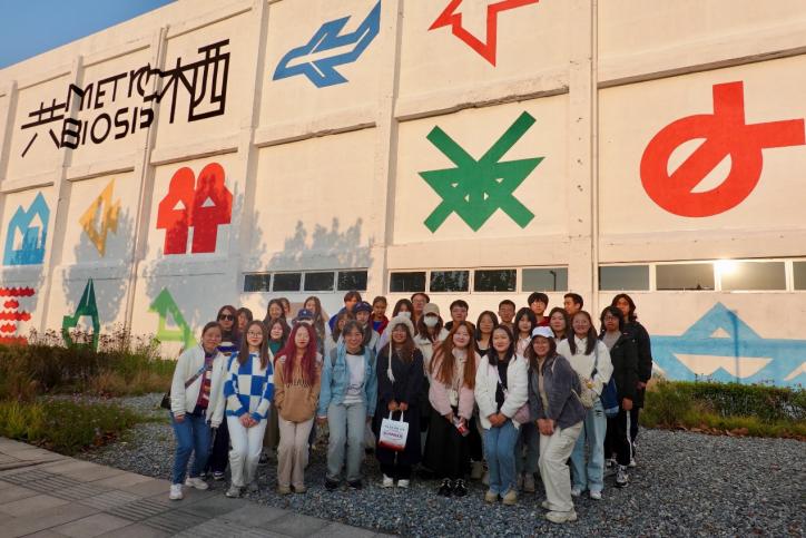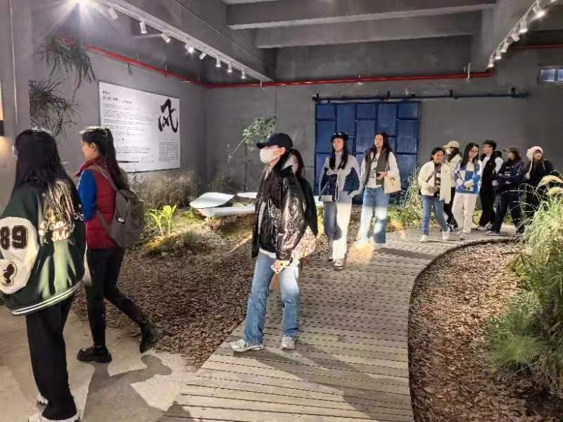 当天下午,师生们又前往徐汇滨江,参观了“2023上海城市空间艺术季”主题演绎展区—白猫主展馆。这一展馆位于黄浦江徐汇西岸,由原白猫洗涤厂改造而来。围绕本届展览的“共栖”主题,三层展馆的四个展示板块,让同学们从关注“与谁共栖”,到思考“置身事内”,再展望“都市之策”,最后期许“自然答案”,慢慢循着展览的主题演绎与叙事逻辑,打开感官,体会城市发展与更新过程,城市与生态、城市与人、城市与多样性生物共栖共生的图景及其背后复杂的文化变迁。