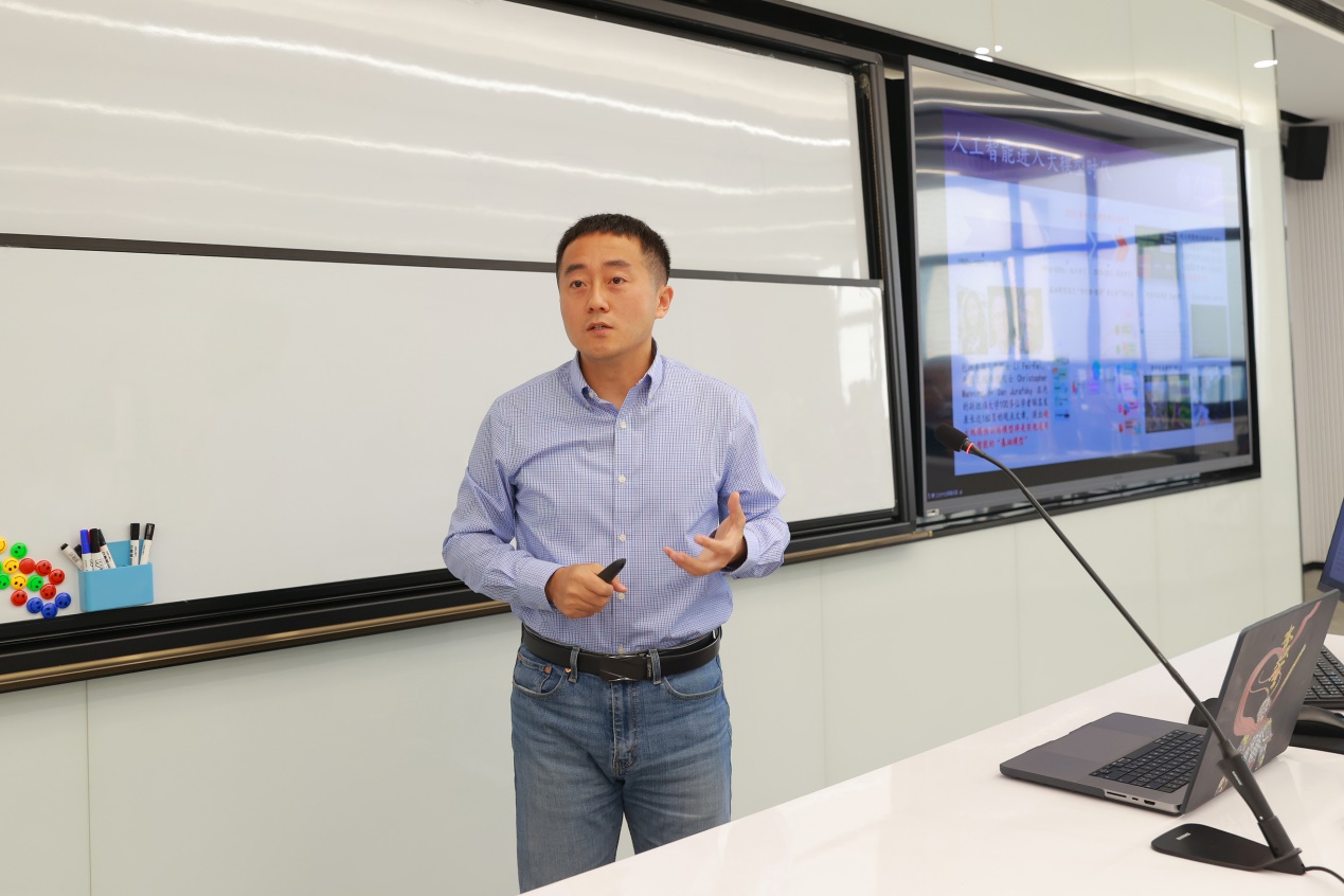4月19日上午,bat365在线体育登录召开教工大会暨教职工政治理论学习会。会议邀请清华大学计算机科学与技术系教授、博士生导师王宏宁做题为《人工智能辅助教育的探索与试点》的专题辅导报告。学校教务处处长周先荣,信息化治理办公室主任刘志鹏,政治与国际关系学院党委书记潘靓、副院长王子蕲,教育学部副主任、国家教育宏观政策研究院执行院长柯政,智谱AI创始人之一张鹏博士,上海人工智能金融学院院长邵怡蕾,以及学院班子成员、教工党支部书记和教工代表等100余人参会。会议由bat365在线体育登录党委书记岳华主持。