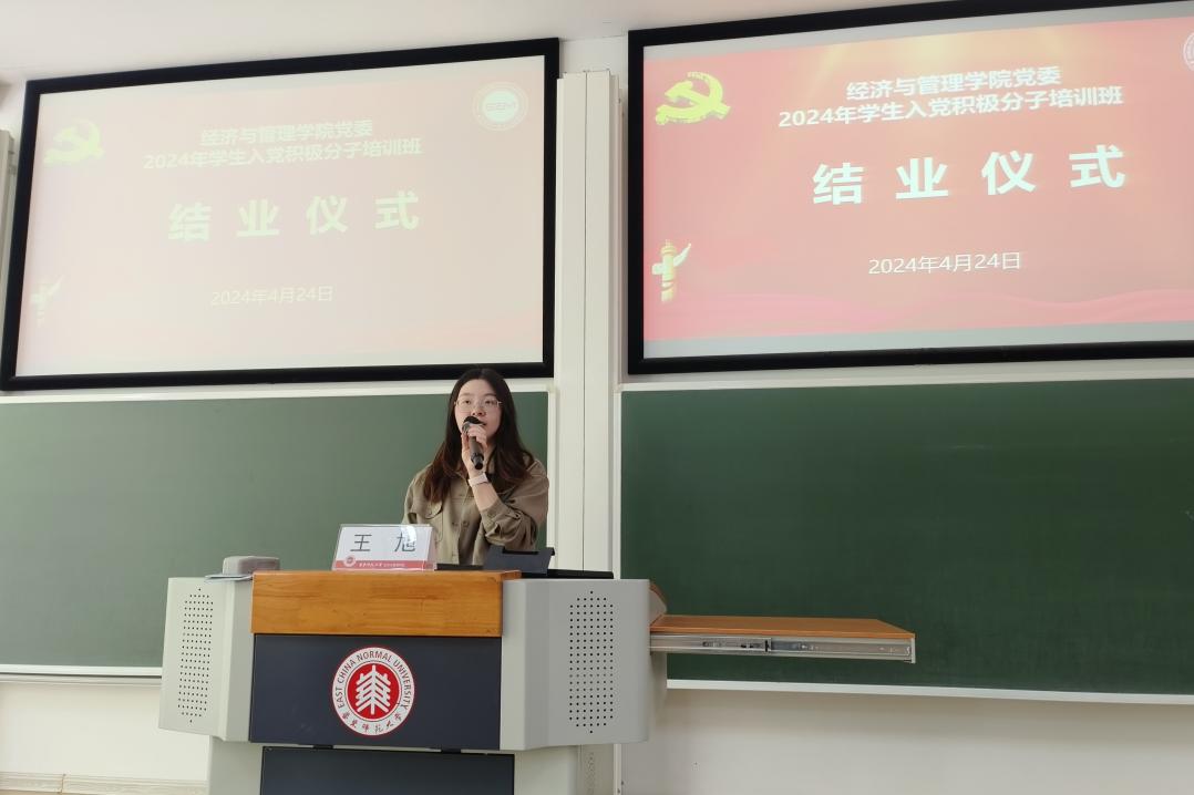 2024年4月24日下午,bat365在线体育登录党委2024年学生入党积极分子培训班在普陀校区教书院举行党纪学习教育暨结业仪式。bat365在线体育登录特邀党建组织员、离退休党支部书记、关工委副主任徐丽华,学院专职组织员、培训班班主任王莹和全体培训班学员共同出席,学院兼职组织员、培训班班主任王旭担任主持。