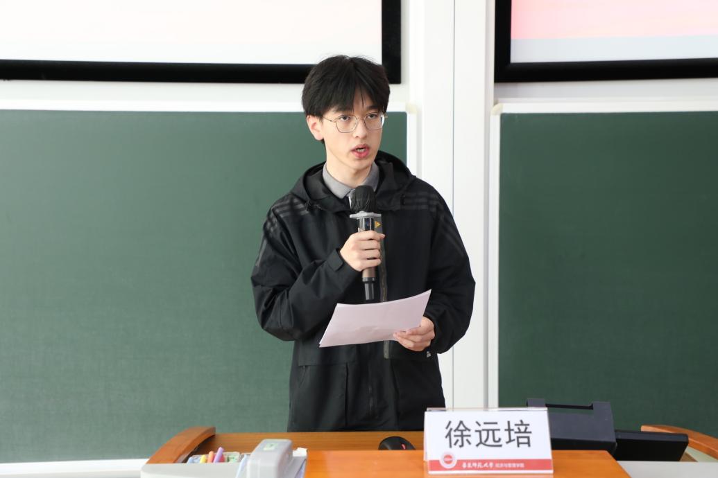 2022级金融学(双学位)专业本科生徐远培作为本期培训班的优秀学员代表发言。他向本期培训班工作组的老师和同学表示了感谢,并从认识上的提升、信仰上的坚定和团结中的奋斗三方面对参训收获进行了总结。他表示此次培训对学员们而言是受益终身的,呼吁大家更加自觉地学习党章、遵守党章、贯彻党章、维护党章,并将理论学习成果融入日常学习工作之中,切实认识到作为新时代新青年的历史使命,团结拼搏,坚定向前,为推进中国式现代化建设和中华民族伟大复兴贡献独一无二的青春力量。